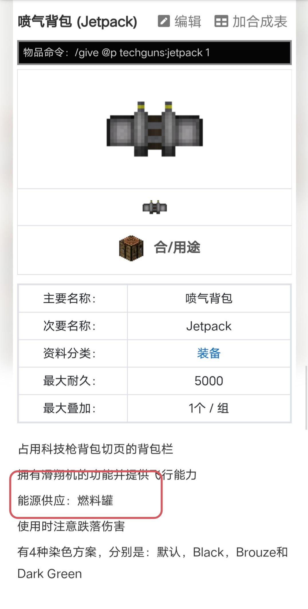 把燃料罐放在下面即可實現充能。 :按住空格鍵時不斷上升,速度逐漸變快,約1s到達最高速。裝備在身上可飛行的背包,深受玩家的喜愛。