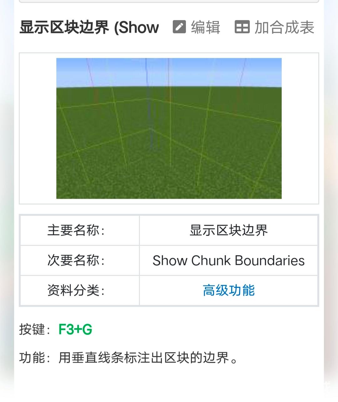 首頁 我的世界 問答 我的世界區塊邊界線怎麼調出來? 2022-12-30 按鍵:F3 G。功能:用垂直線條標注出區塊的邊界。只要F3 G就可以直接跳出區塊邊界線了,還有F3 B或H或F,都是不同的功能。