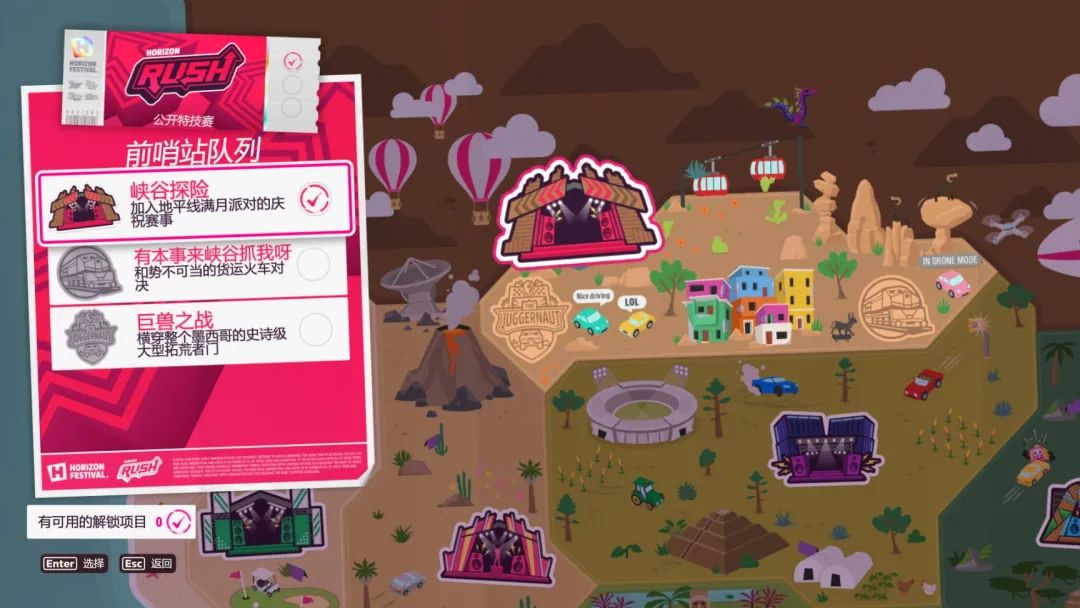 漂移區間需要在地平線冒險中解開公開挑戰賽-峽谷探險,並前往完成花車迅游等任務才能開放