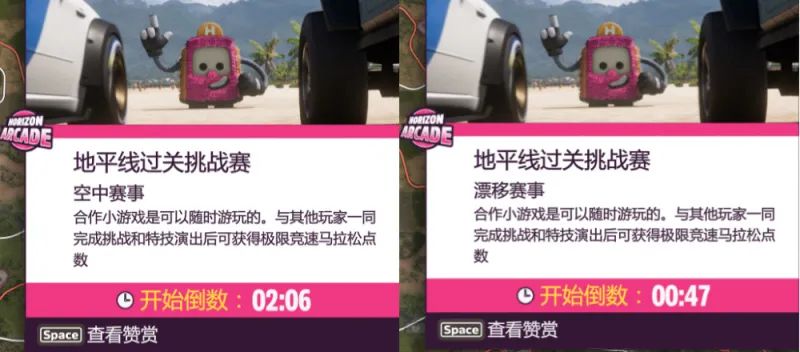 過關挑戰賽非常類似前代的整點馬拉松賽事,一群人聚在一起完成三個挑戰,賺取馬拉松點數