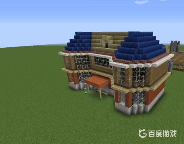 9、然後沿著頂部的青金石塊向後做,一直到屋後,在屋後可以加上個窗戶增加美觀。