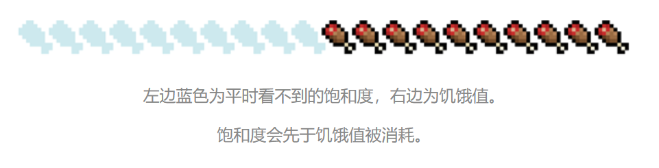 首頁 我的世界 問答 我的世界飽和度是什麼意思? 2022-12-30 飽和度和飢餓值類似,也是一種重要的食物統計方式,但它是不會被顯示出來的,當降臨在出生點時,飢餓值是滿的,飽和度此時也是滿的,進行一段時間的活動後,飽和度消耗完,飢餓值才會開始消耗。