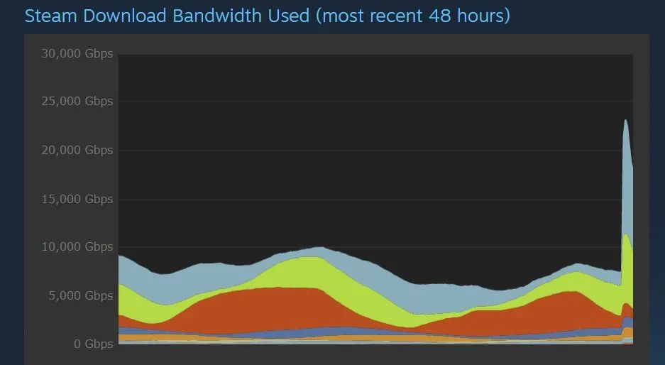 根據 V 社報告頁面顯示,目前 Steam 的帶寬使用量已經回落趨於正常水平。