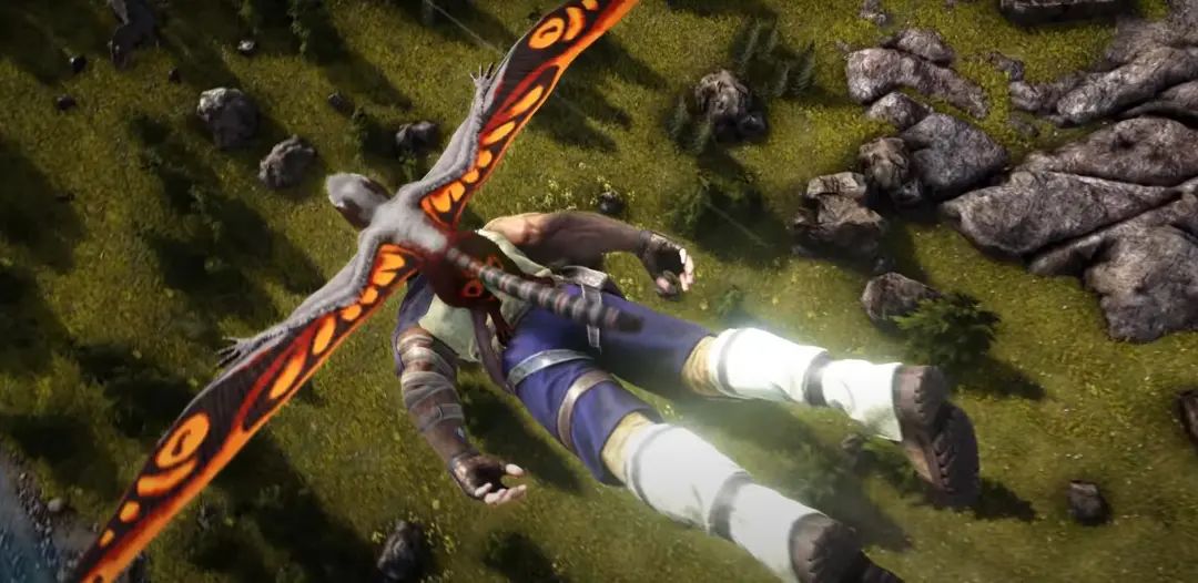 不過,即便失去了泰克科技,玩家依然可以在游戲中飛檐走壁。除了常見的飛行生物外,新加入的中華大眼翼龍也為玩家提供了良好的空中機動性。這種可愛的小生物不僅有著恐嚇其他生物的能力,還可以抓在玩家身上,提供滑翔、短暫飛行的能力。