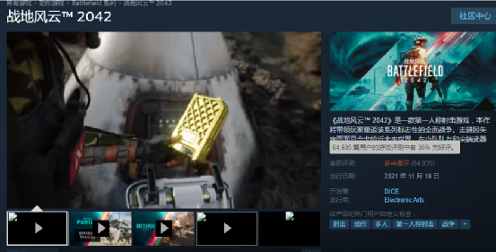 《戰地風雲2042》上個月正式發售,目前在Steam商店的玩家整體評價為「多半差評」,玩家好評率只有35%。許多玩家對這款游戲缺少積分榜、地圖空洞、載具經常出現故障等問題感到不滿。