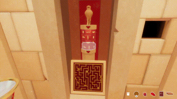 如果說謎題決定了樂趣的坡度,那麼交互機制則決定了坡度的長度,一個粗劣的交互機制勢必令游戲體驗的流暢度大打折扣,味同嚼蠟。不得不說本作的交互機製做的真實且有趣,場景中的大部分道具都為可互動道具:大到桌子、箱子,小到帽子、書籍,就像超市一樣,隨便挑隨便拿。當然,單單拿起來並不算什麼,那如果說任意一本書都可以翻閱、任意一個花瓶都可以摔碎、任意一頂帽子都可以佩戴呢?