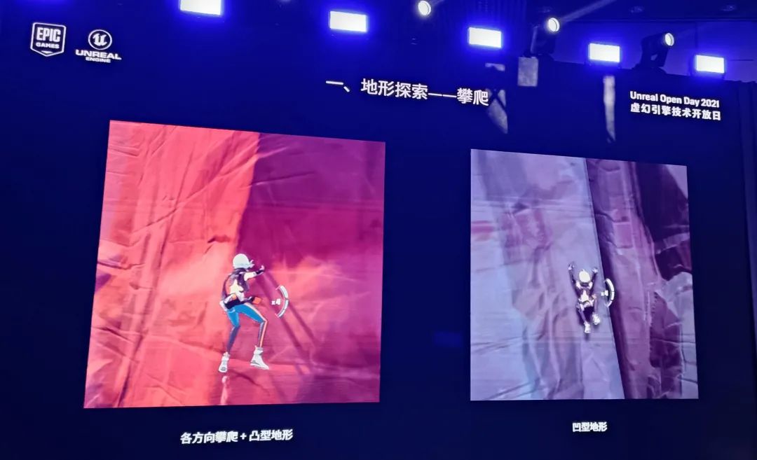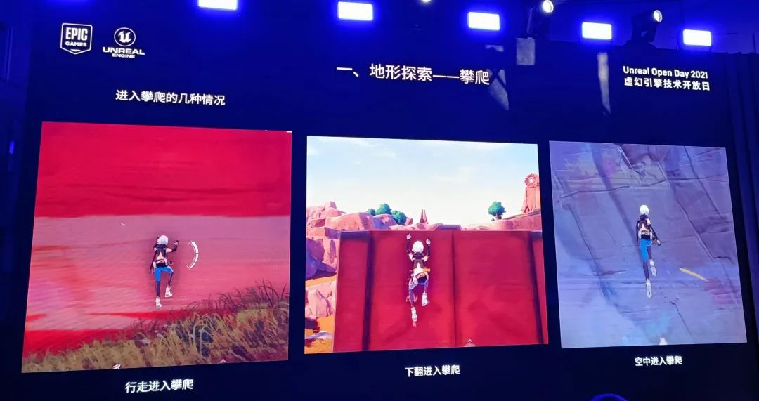 滑翔,因為人類不可以飛,所以在游戲里可以飛或者滑翔是很好的游戲體驗,所以我們就製作了滑翔。它是通過重載移動組件里的Falling來做的,我們修改、優化了它的轉向,以及重力加速度來實現滑翔。
