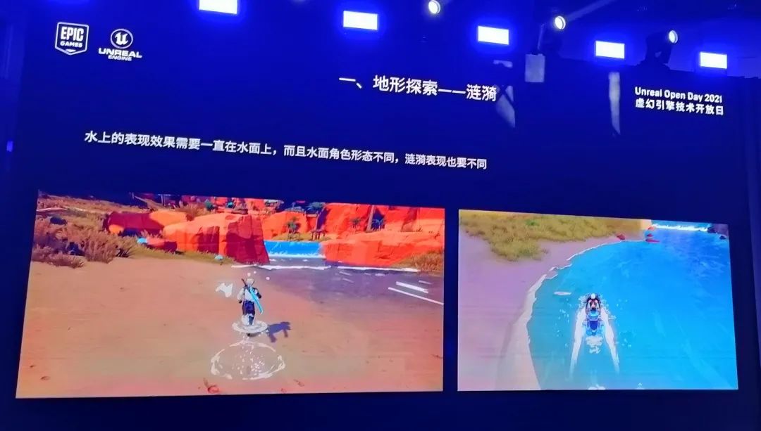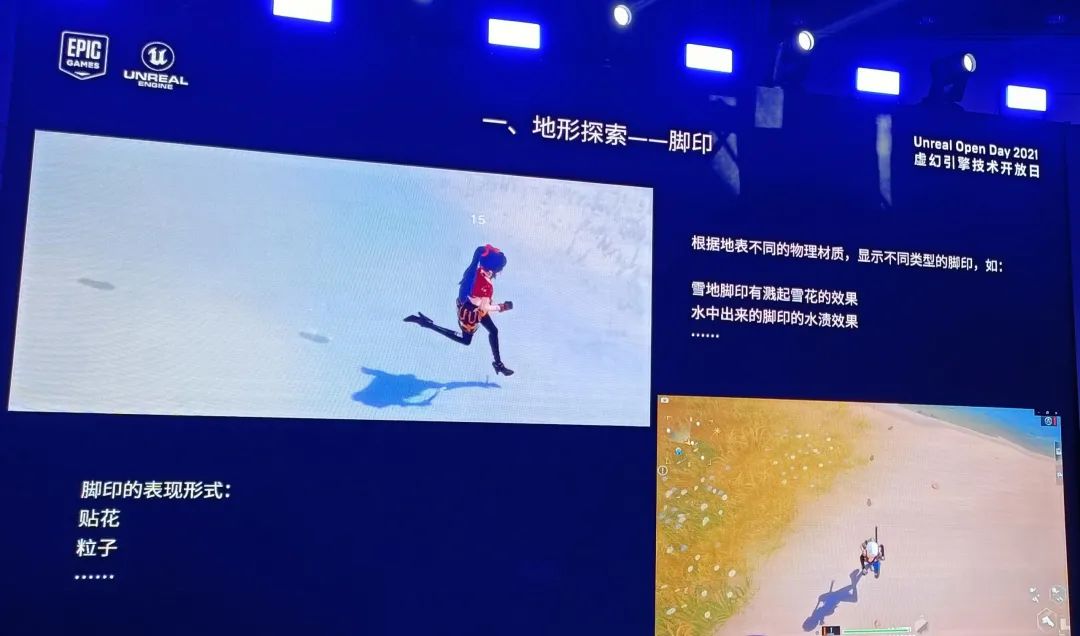 這次演講所說的開放世界自由探索,不是從游戲玩法和游戲設計角度出發,而僅僅從功能實現角度出發。比如說走過的路,地下會留下腳印,蹚過水會泛起漣漪,對大世界有所動作,大世界也會給我對應的反饋。