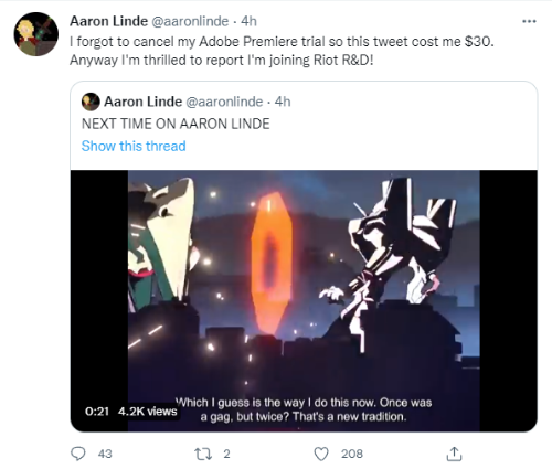 Aaron Linde在推文中表示:「我將離開343 Industries,以尋求2022年新的工作機會。這是一個極其艱難的決定,《光環:無限》一直是我職業生涯中最值得驕傲的成就之一。我很感激能參與其中。我要感謝343親愛的同事們製作了一款我曾經參與過的最好的遊戲,你們讓2021年對我來說是非常特別的一年。」