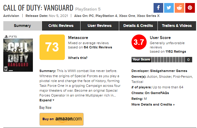 近年來,《使命召喚》系列游戲質量逐年下滑,其最新作《使命召喚:先鋒》M站玩家評分僅3.7分,如果真如爆料所言,《使命召喚》放棄每年一部的發行計劃,對玩家來說,或許是一件好事。