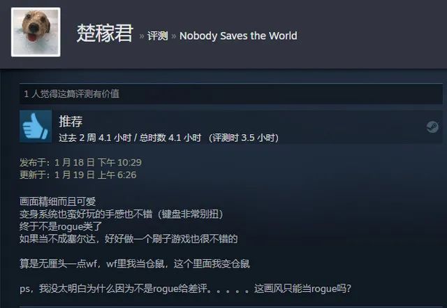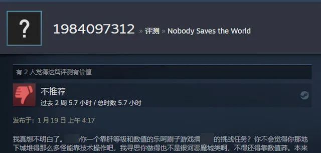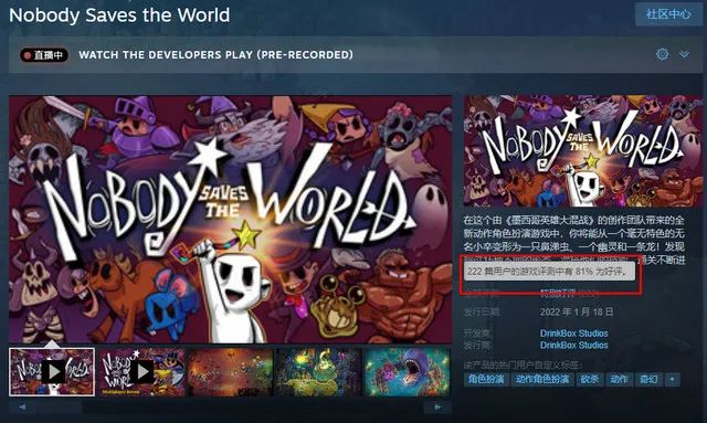 雖然僅看數據,《Nobody Saves the World》並不佔優勢,作為一款由獨游團隊開發的刷刷刷遊戲,目前遊戲在Steam上售價70人民幣的同時,玩家的好評率也「只有」81%,但在小月看來,這並不影響遊戲的魅力。