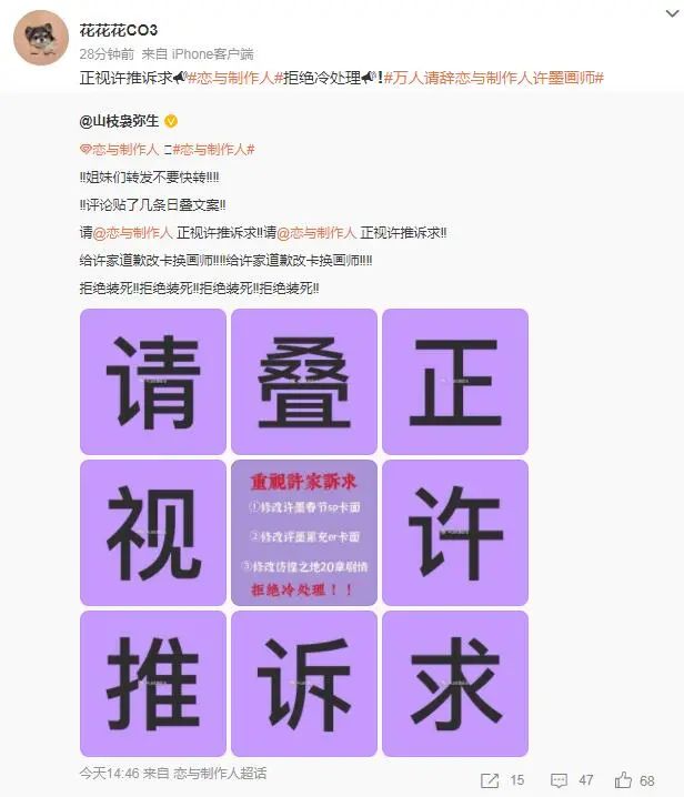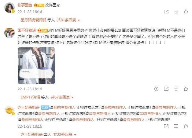 隨著時間流逝,3天時間過去,針對SP許墨春節卡面太丑的事情愈演愈烈,從最開始的小規模吐槽,目前已經發展到大規模要求《戀與製作人》官方正視訴求的程度。截至目前,在微博超話以及貼吧等玩家匯聚地,可以看到不少《戀與製作人》玩家都在以刷屏的方式,希望得到官方的回應。