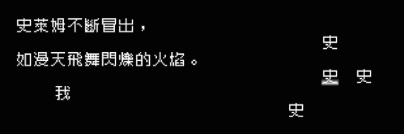 看著右側滿屏幕亂飛的「史」——開發團隊如此粗暴的畫面設定將一股難以遏制的笑意推進了筆者喉嚨。