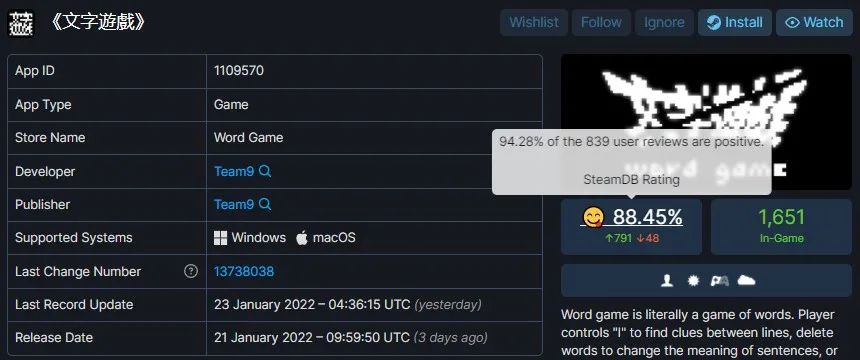 隨著近日《文字遊戲》正式版上架 Steam,曾嘗到試玩版甜頭的一大部分玩家頭也不回的沖進了更為豐富燒腦的漢字謎題之中,作品內容與玩法有著試水成功的經驗後自然不會辜負玩家的盛情,94%的好評率便是其表現出色的證明。