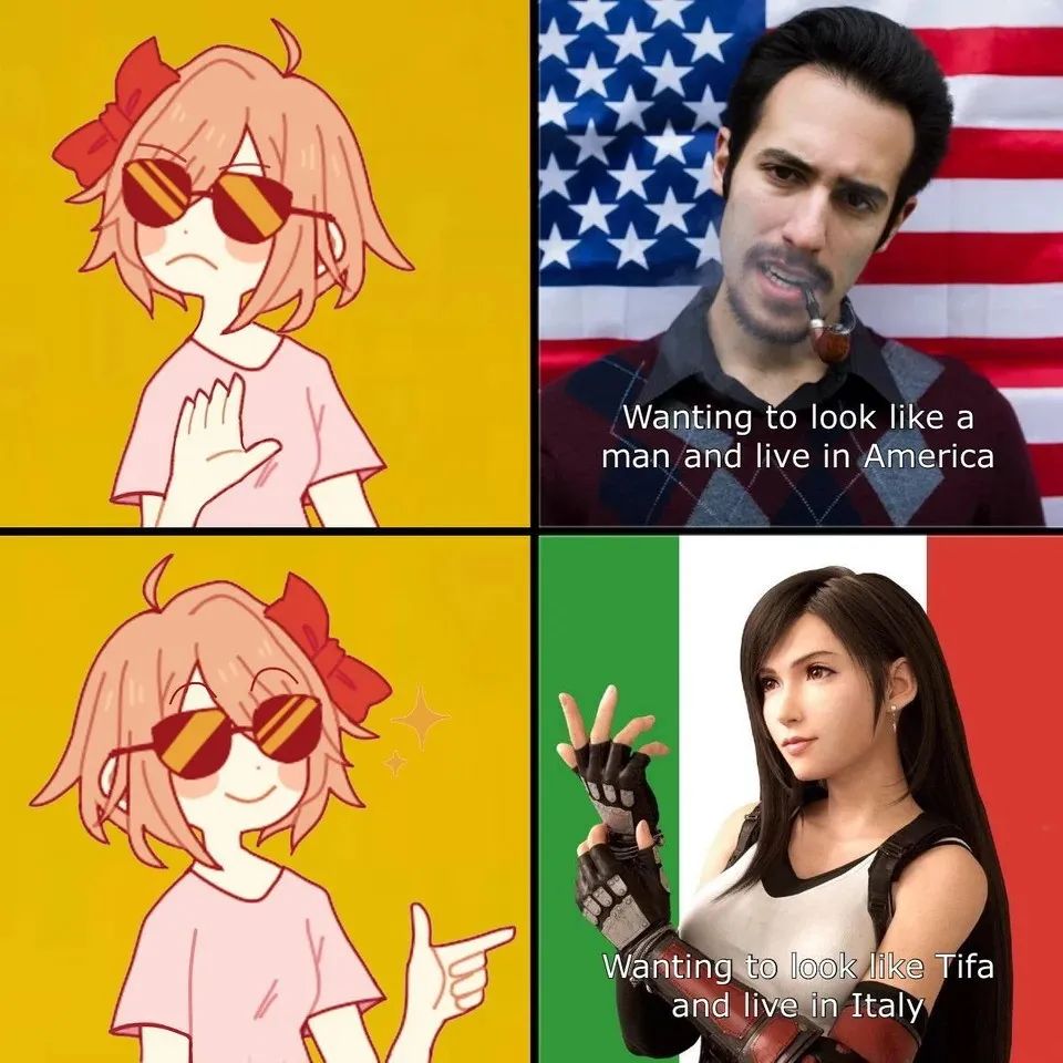 在網民創作中,蒂法開始披上義大利國旗,穿著和國旗顏色相同的裙子,甚至受封2022年義大利小姐。