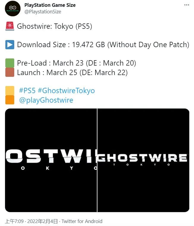 近日,推特PlayStation Games Size曝光了PS5版本的《幽靈線:東京》的遊戲容量,在不含首日補丁的情況下,遊戲需要下載的數據大小為19.472GB,與PC版本相差不多。