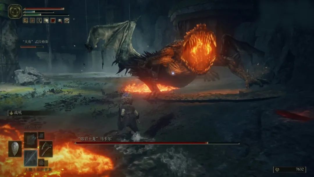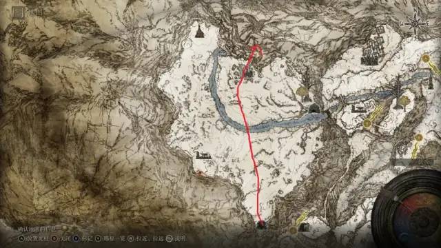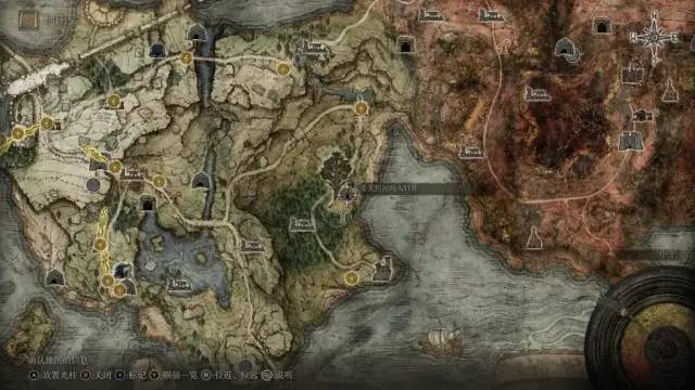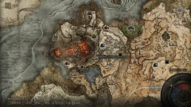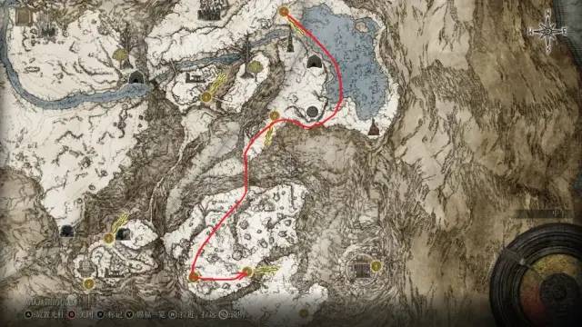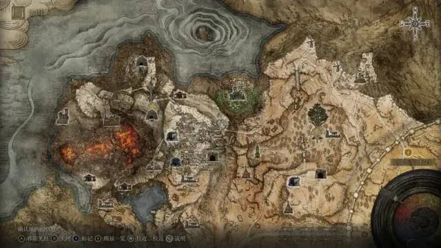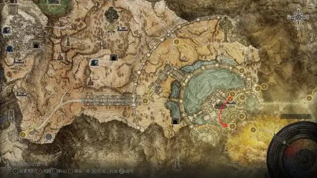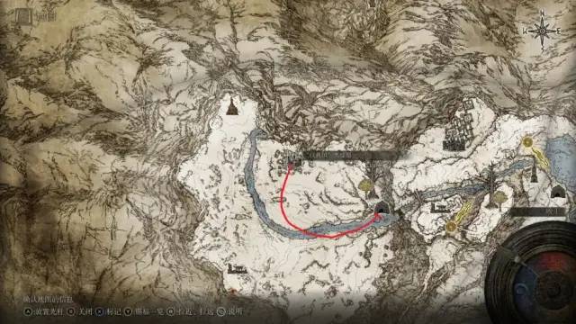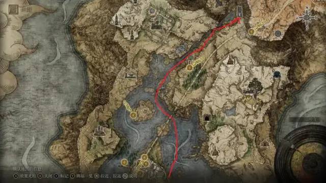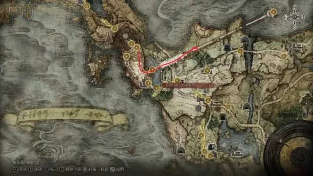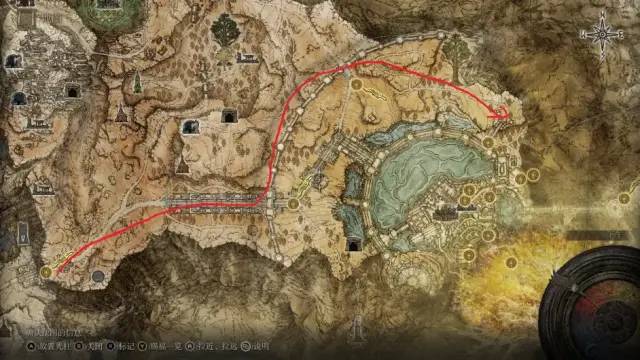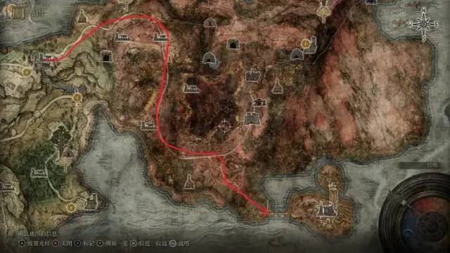 先來到圖中標記的罪人橋賜福點,沿著崖壁走會看到一個梯子爬上去沿路到達有氣流跳躍的賜福點,騎馬跳上去觸發西格瑪的boss戰,無視掉boss騎馬從旁邊的突起跳到對面來到火山官邸。和官邸主人對話後拿到鑰匙開啟旁邊的客房,其中一個房間有隱藏門,進入隱藏門後沿路走到有個機關橋的場景,推動機關回到起點,旁邊霧門就是boss戰。靈活的肥肥,弱異常狀態,用出血打的賊快。
