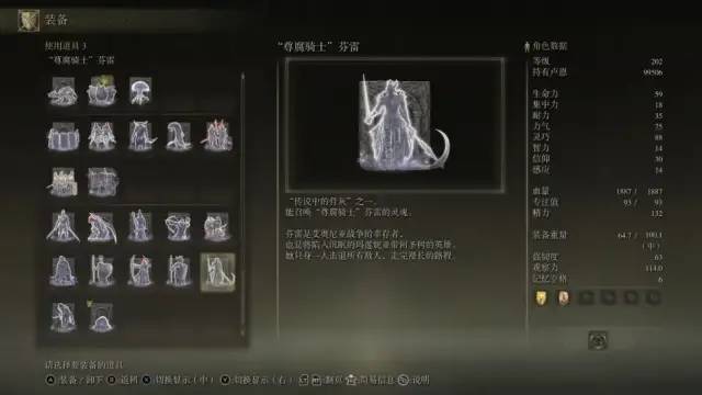 尊腐騎士:從聖樹分枝的祈禱室賜福出發,沿主路從一個正在四處觀望的小兵旁的欄桿跳到前面的平臺,在尊腐騎士後面的寶箱獲得。