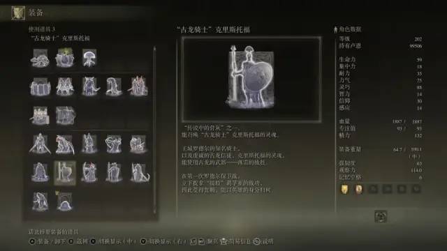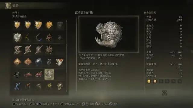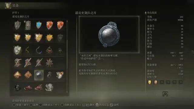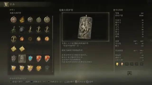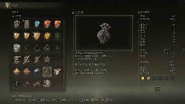 古王護符:從天空城大橋側邊賜福點上樓梯往左(往右是黑劍boss)到最深處獲得。
