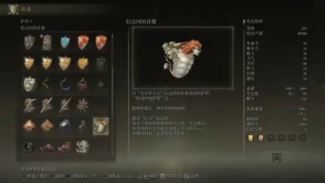 拉達岡的肖像:在魔法學院討論室賜福點出門右轉牆邊跳到護欄外側,爬梯來到二樓寶箱處獲得。