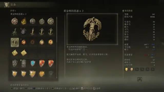 黃金樹的恩惠+2:在擊殺黑劍後從禁域往回走到王城大門,在坡底最深處的樹枝頂端獲得,注意躲避兩只腐爛樹妖的攻擊。