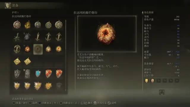 拉達岡的糜爛烙印:在法洛斯要塞裡爬梯從最裡面的缺口往下跳到中層,在中層缺口處再跳到對面的平臺往下獲得。