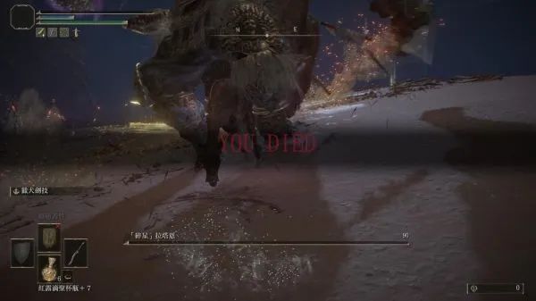 目前有兩個方法解鎖拉塔恩boss戰,一種是要先到驛站街廢墟的地牢找魔法老師瑟濂,再去卡利亞城寨後的三魔法師塔找賽爾維斯,賽爾維斯會讓你去找瑟濂,瑟濂再給你推薦信,具體流程我沒做過所以不多評價。另一個方法是從風暴山丘往東來到聖人橋的賜福,右邊懸崖上就能看到壺哥,幾下重擊把壺哥救出來後會告訴你要去參加祭典,如果沒找到壺哥就去蓋爾坑道的出口找他。接著來到不破大橋的賜福點,大橋旁的傳送門會直接把你傳送到城內,對話後坐電梯進入傳送門就是boss戰。要注意在做這兩條線之前來到紅獅子城,從城後繞到城內會有獅子混種和熔爐騎士的雙boss戰,會關係到傳說武器的收集。如果你打完拉塔恩還想打這場boss戰則需要做完魔法老師瑟濂的支線。boss壓迫感很強,進boss戰直接往前面的三符跑,第一下紫箭會被小建築擋住,放完第四下紫箭後會放箭雨,可以騎馬加速躲過,但箭雨後會根據距離大概率放第五次紫箭,所以躲完箭雨後要立刻下馬,另外符可以不止招一次。活用招人機制,不建議馬上作戰,因為拉塔恩連段多,很可能一個重擊把你錘下馬,在你浮空狀態第二下直接把你帶走。