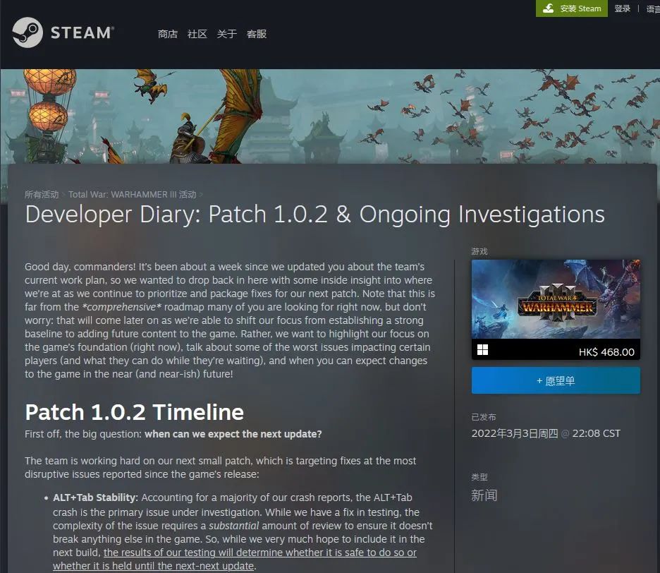 目前《全面戰爭:戰錘3》也遇到這種情況,而遊戲的開發商 Creative Assembly 正在調查其影響。