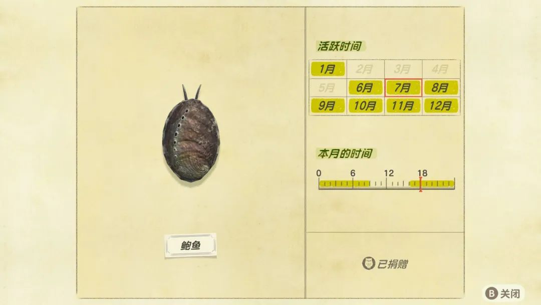 13、鮑魚 | 賣價:2000 | 魚影:中 | 移速:普通 | 時間:16時-09時
