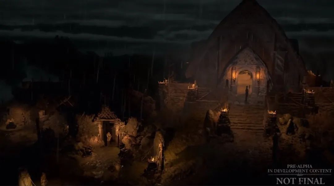 我們在打造《暗黑破壞神4》遊戲環境時,採取的風格相較於先前的系列作品來說更加黑暗、更加身臨其境。我們的目標是讓玩家能夠充分沉浸在遊戲中,而不是一昧地追求寫實度。關於這個部分,我們必須使用合適的材料、建築結構和物體風格,才能讓玩家在探索地城和開放世界的時候融入遊戲的氛圍當中。此外,區域氣候條件、多樣生態系以及故事劇情的歷史背景,也為聖休亞瑞這種中世紀風格的遊戲世界奠定了基礎,讓物品和地點的視覺設計有了可以依循的模式。畢竟聖休亞瑞這個地方擁有淵遠流長的歷史、沖突和鬥爭,因此我們可以從許多不同的面向著手,描繪出多元豐富且引人入勝的遊戲世界,替區域地點營造出黑暗哥德式中世紀的風格。即便是聖休亞瑞最富庶的區域,要生存也有一定難度。在確立這些特色與風格之後,遊戲世界又能夠變得更加多采多姿。這點成為了一種跳板,讓我們能夠呈現出空間環境的視覺細節,讓我們有能夠聚焦並作為主軸發揮的題材。遊戲環境的氛圍幾乎是以有形的方式表達出來,因為《暗黑破壞神4》的視覺系統更加著重於天氣和光線。下雨的時候,地板會被淋濕、車輪和馬蹄經過的地方會出現小水窪、地面會出現泥濘,而且周圍的環境會變得比較沉重抑鬱且潮濕。此時,如果你進入火光朦朧的旅店避雨取暖,就會立刻感覺到室內與室外環境的鮮明對比。我們想要帶領玩家去感受過去或最近發生在某個地點區域的事件。美術設計作業最令人有成就感的部分,在於開發並聚焦在某個區域地點的獨特視覺故事,反覆推敲美術的設計方式,直到該區域地點變成經典的戰鬥與探索場景,充分呈現出《暗黑破壞神》的風格和特色。