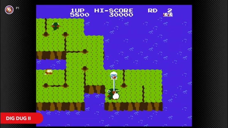 本作是1986年發行的FC平台動作遊戲。操作主角「Dig Dug」,與摧毀島嶼的怪物戰鬥。通過用鑽頭刺穿它們充氣並刺穿它們,或者通過摧毀一個島嶼並將它們扔進海中來擊敗怪物。如果你把所有的怪物扔進海里,分數會根據怪物的數量增加。擊敗所有怪物以清除回合併進入下一輪。