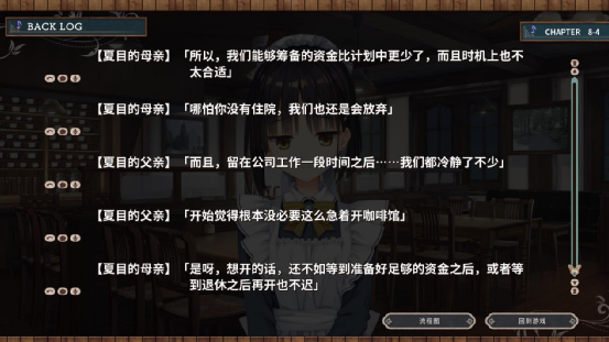 相較於栞娜線,夏目線對感情的刻畫要細膩的多,夏目想開咖啡館有兩個很重要原因,一是因為自己小時候病弱住院的時候對穿女僕裝的憧憬,二是因為開咖啡館是父母一直以來的願望,夏目自認為父母為了照顧自己而放棄了夢想,因此一直對這件事很愧疚。
