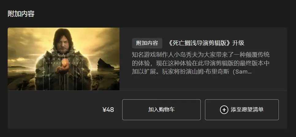 Steam與Epic的老玩家,均可僅花48元進行升級;而對於尚未在PC買過《死亡擱淺》的新玩家,目前能且只能花198元(Epic暫時為209元)來獲取這部游戲。