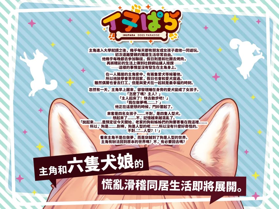 經典遊戲《巧克力與香子蘭(NEKOPARA)》開發商 NEKO WORKs 在愚人節今日公開了「新作」《犬娘樂園(INUPARA)》,講述主角與六位犬娘慌亂滑稽的同居生活!官方目前推出了本作的主題曲《いぬのおうた》。