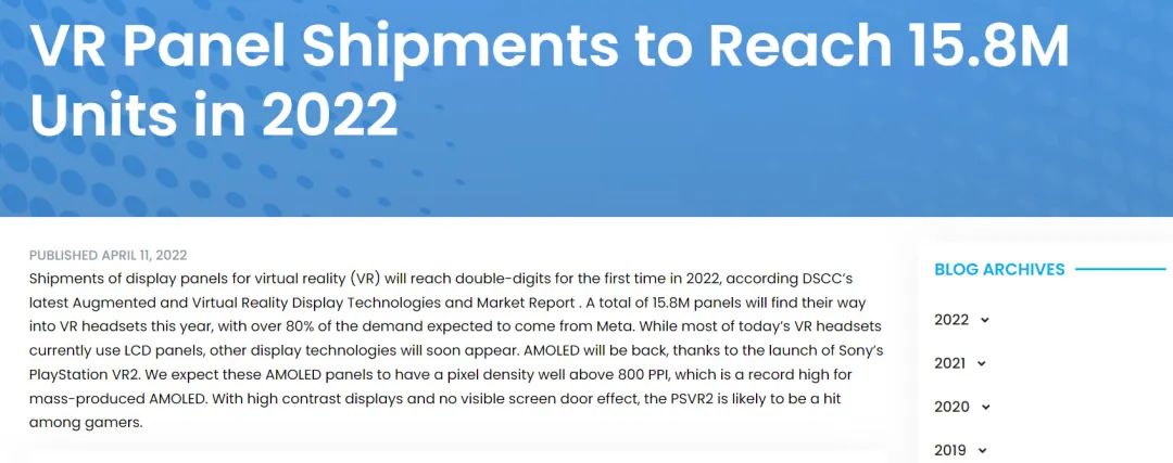 根據Display Supply Chain Consultants(DSCC)的CEO Ross Young,索尼新的VR頭顯將於2023年發售,使用AMOLED屏幕。