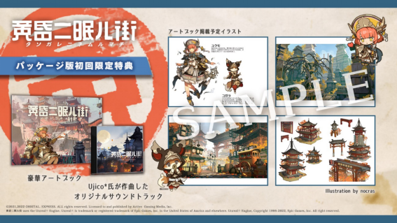 實體版設有雙面封套, 初回生産分限定豪華特典實體版中包含了人氣插畫家兼本作的遊戲開發者nocras老師繪製的設定資料集。以及由知名電子音樂家Ujico*老師創作的15首歌曲的遊戲原聲大碟。