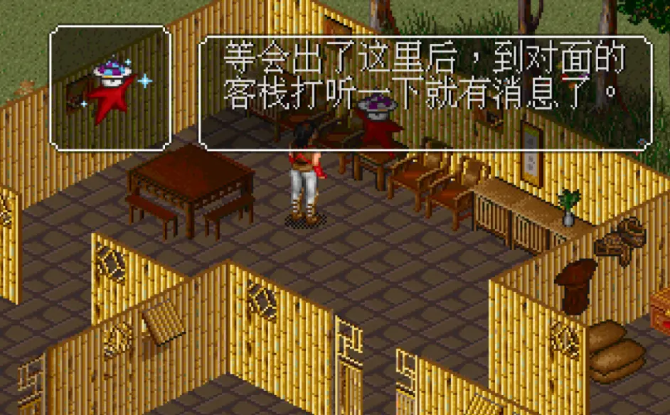 主人公醒來,與軟體娃娃對話後,按照娃娃的指點找到河洛客棧中的店小二,塞點銀子給他,得知應該去找南賢。