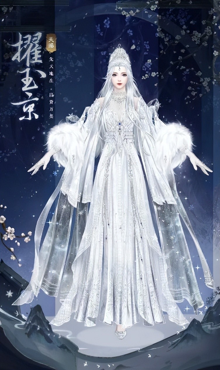 另一款時裝「擢玉京」一襲銀白錦袍華美綺麗,十分不俗!甚至有江湖姐妹表示這套很有玉兔仙子的feel,有著九霄月宮女仙獨有的清冷感和高貴感~細品之下,好像確實有那種俊美冷艷的氣質,真的很讓人心動啦!這款時裝運用了大量的珠寶,燁燁生輝的鑽石與青金石,以及頭上的嵌珠白金珠髻、額前的水滴鑽,讓整套時裝貴氣逼人呢!
