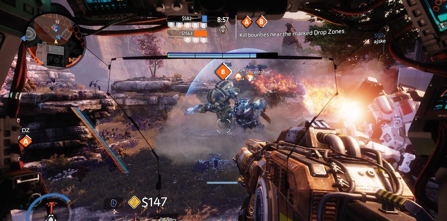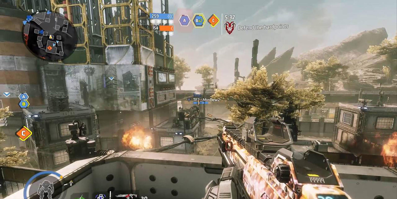 多人模式多人聯機對戰有邊境防禦、消耗戰和競技場等多種模式,遊戲有一個能量條設定,通過擊殺可以積累能量,釋放戰術技能或召喚泰坦。登陸Steam後活躍人數提升了很多,匹配時間在1~2分鍾。