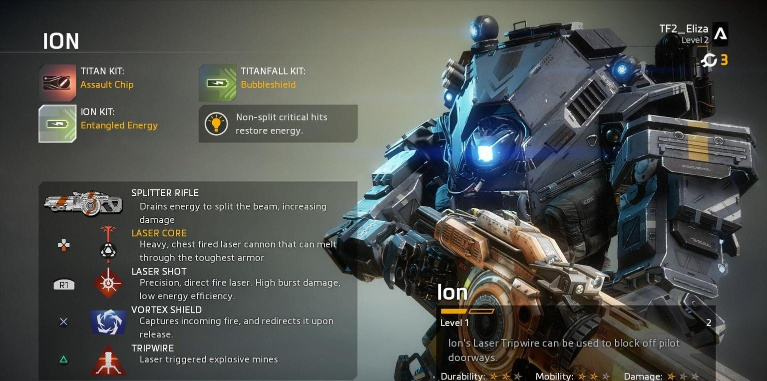 泰坦有7個型號,側重不同戰斗類型,「浪人」擅長近距離格鬥,「離子」擁有強大的火力…每種泰坦都有一把強力武器和4個主動技能,比如能量盾、集束飛彈和激光炮,玩家也可以自行改造升級泰坦。