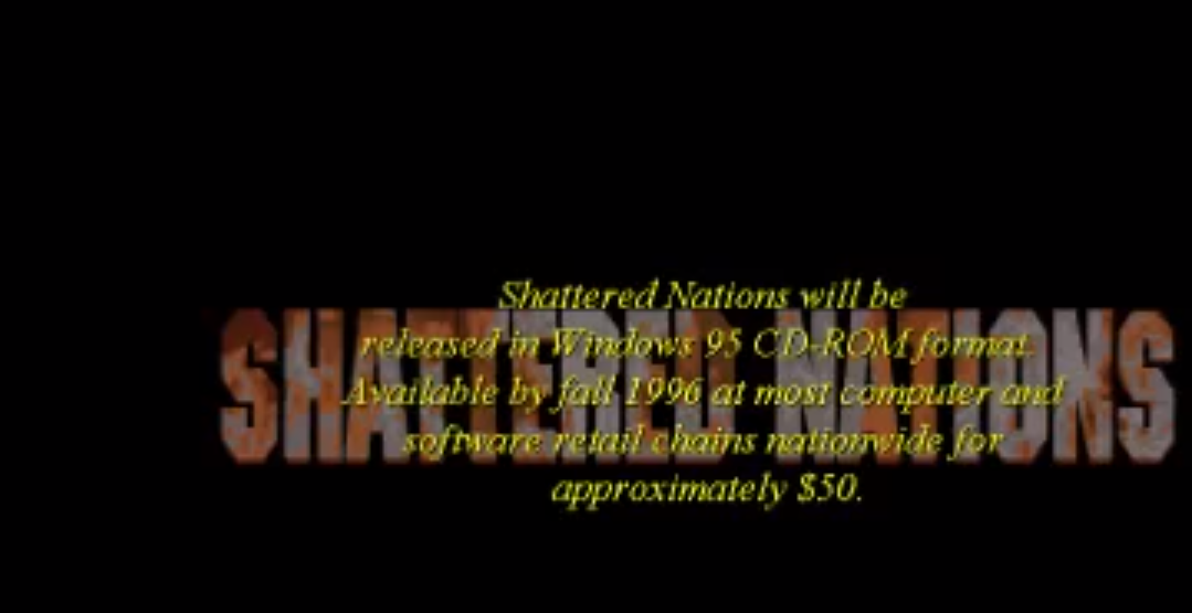 假如,沒有意外發生,這款遊戲的發售日期被預定在1996年秋季進行發售,暴雪也為了宣傳這款遊戲,曾在1995年的E3遊戲大展上,高調曝光了此作,可謂信心滿滿。但就在1995年12月,《魔獸爭霸II》的發售,不僅將暴雪推上了「RTS王者」的寶座,也變相促成了這款即將發售的遊戲,胎死腹中的局面。這個宣傳片中寫道的:1996年秋季,在WIN95系統上以CD-ROM格式,售價50美元發售的《Shattered Nations》(破碎國度)被永遠定格在了這一刻。