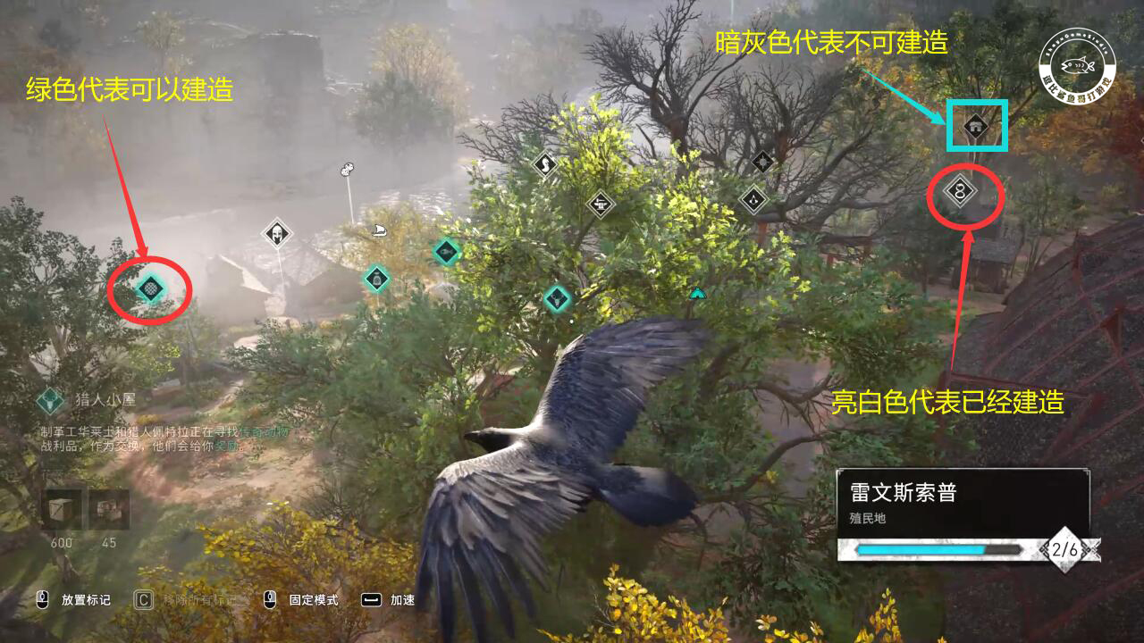 兵營、船塢、獵人小屋、博物館……海量的建築與新玩法等待玩家進行解鎖,以提升家園的聲望。在家園的時候按V召喚渡鴉,則可以觀察目前有哪些建築可以建造,十分方便。