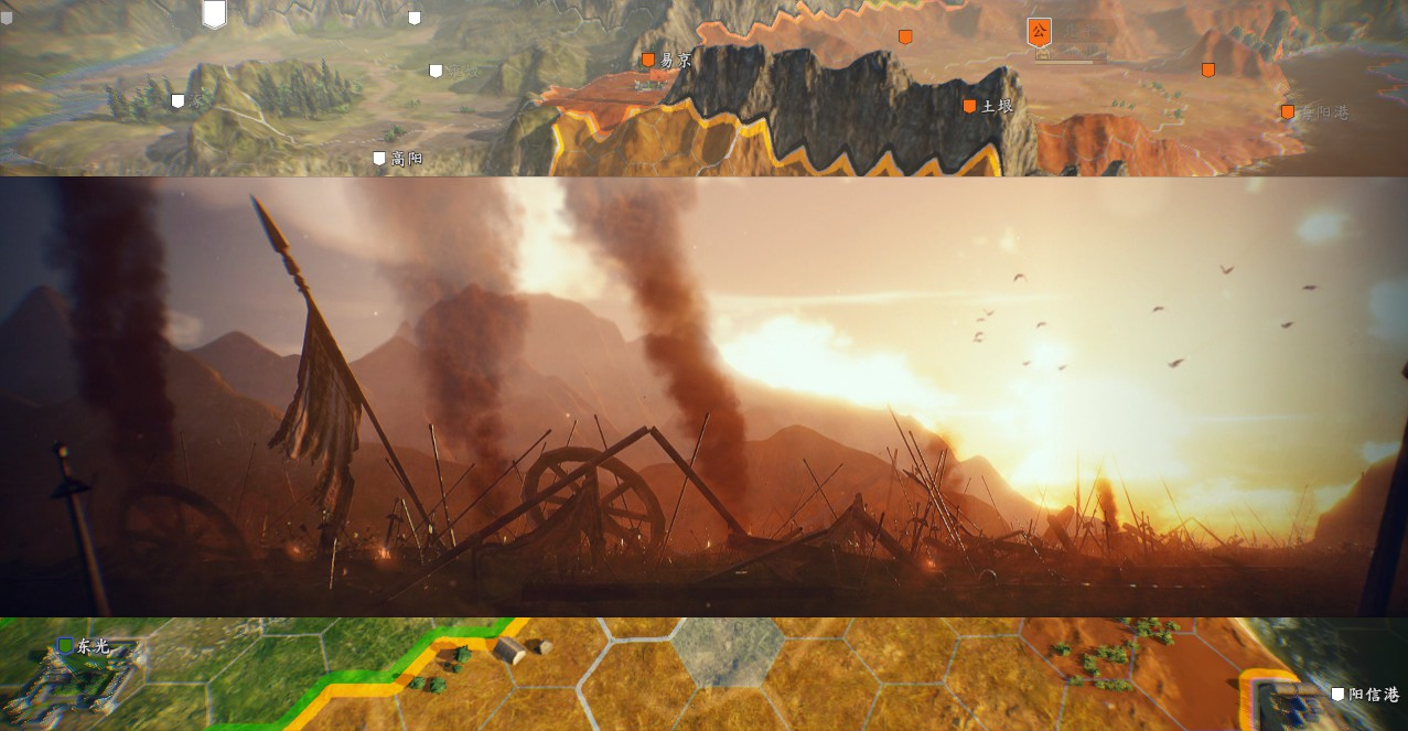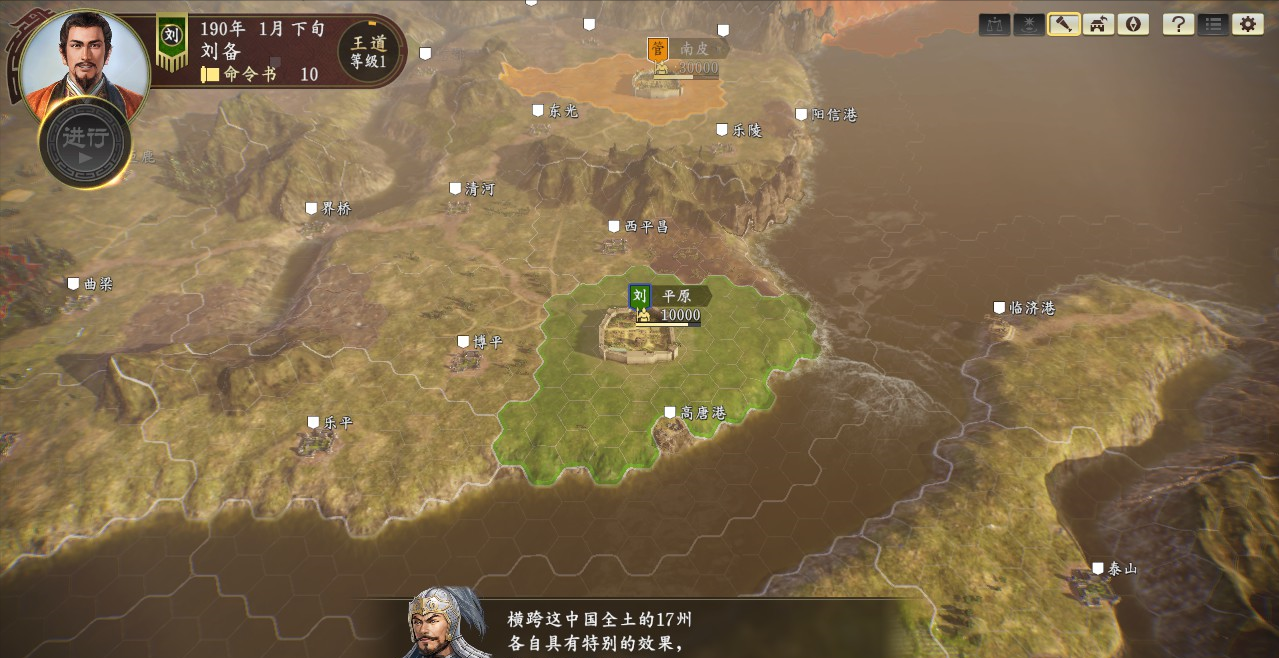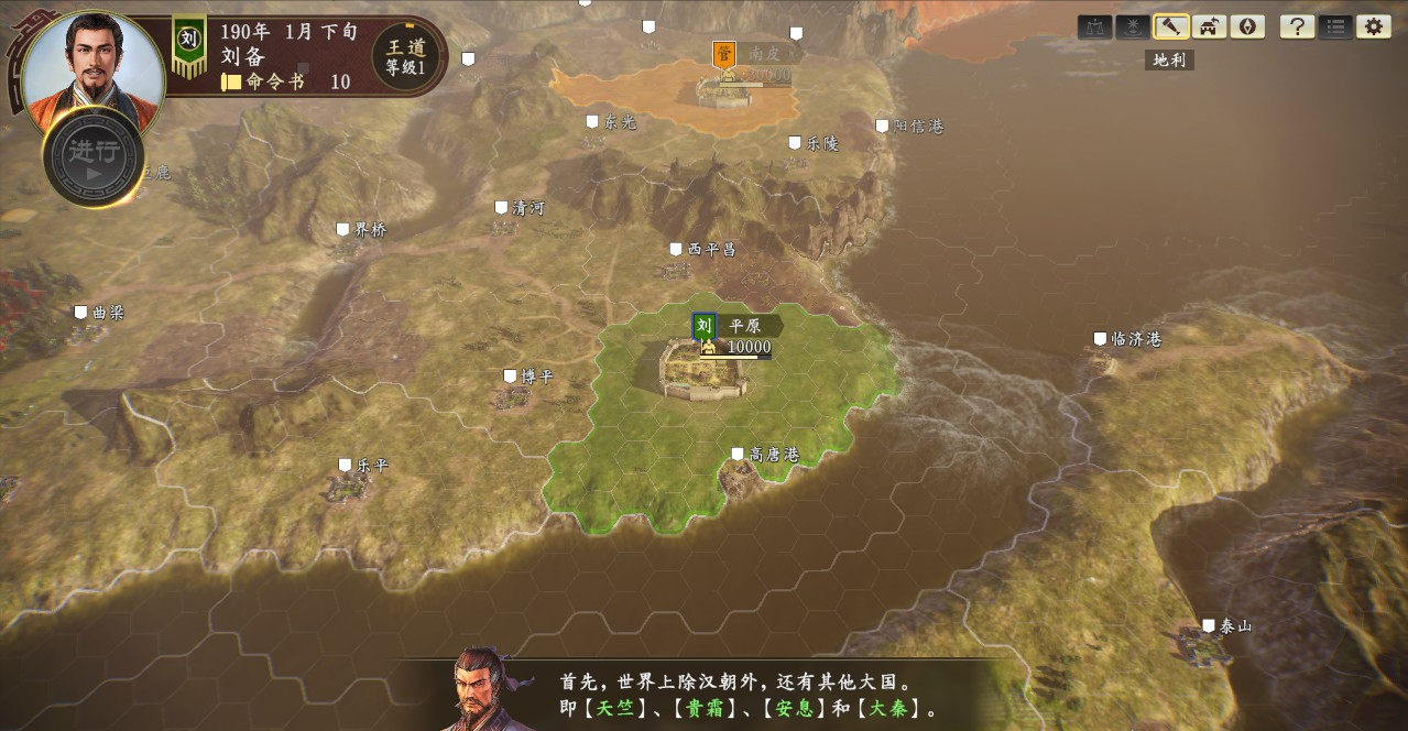 原版中的塗色系統算是一個讓人耳目一新的玩法,同時系統設計也比較完善,圍繞其展開的戰鬥系統已經比較完善。在這次的威力加強版中,又額外加入了一個影響戰局的要素,即「地利系統」。游戲中整張大地圖被分為17個地區,比東漢末年的13州多出了4個地區,在每個地區中又分為若干城市,每當玩家占據了每個地區兩個以上城市時,就可以激活該地區的地利效果。各地區均有其獨特的地利效果,比如接近異族勢力的地區就可以與相應的異族進行外交,位於貿易路線上的地區可以與其他國家交易,以及一些涉及武將、經濟、計策等數值的特殊提升等等。關於地利系統的詳細劃分和效果可以移步我的好朋友「逗比鯊魚哥打游戲」撰寫的《威力加強版:變化不大,卻充滿絲滑順感》,他對17個地區的劃分和效果做了詳細介紹。