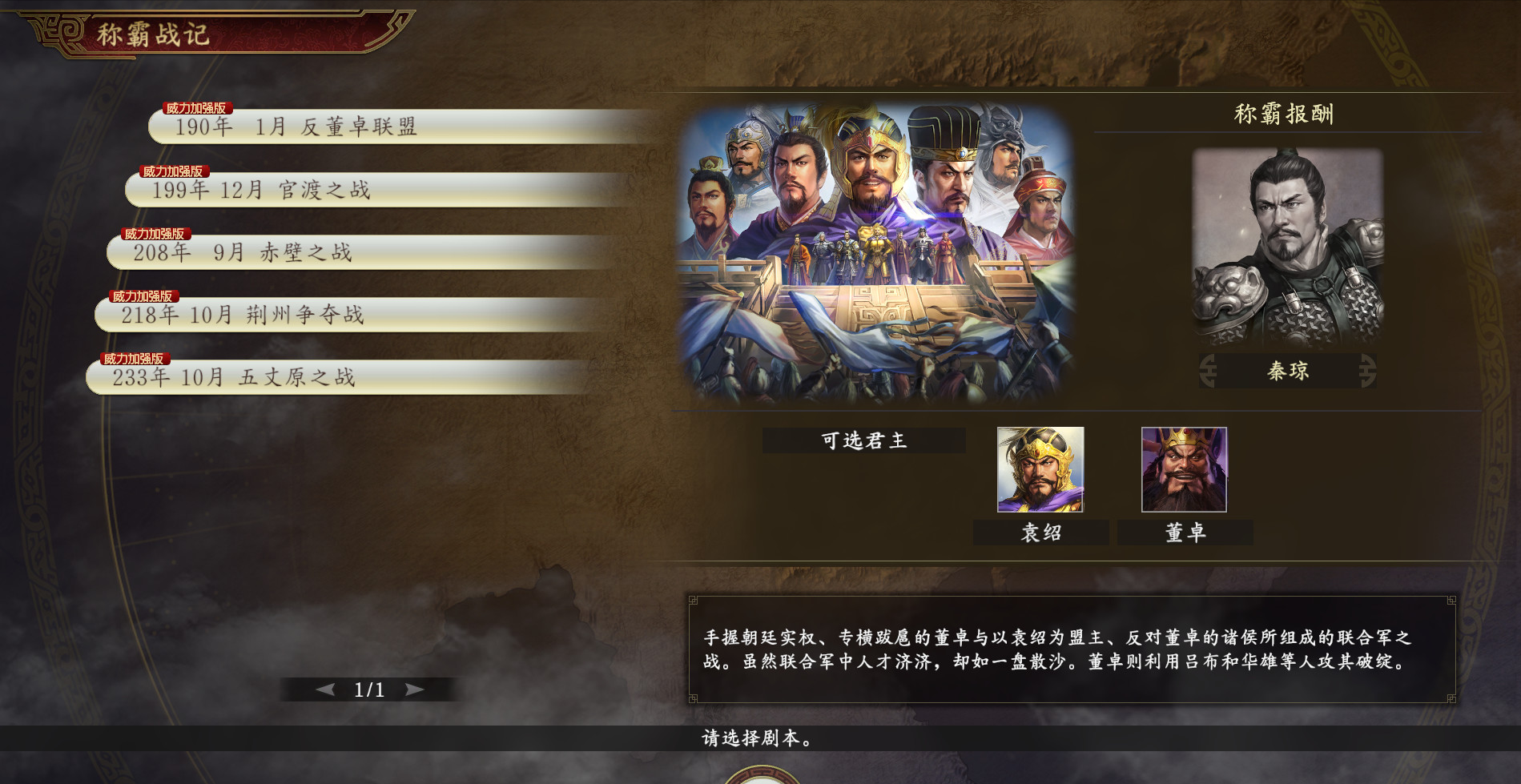《三國志14威力加強版》中另一個比較大的增加內容就是制霸模式了,類似於以往的短劇本。在這個模式中出現的劇本基本上都是三國中非常著名的戰役,比如玩家耳熟能詳的官渡和赤壁之戰,在這個模式中玩家只能選擇參與戰役的部分勢力在有限地區範圍內進行操作。同時擁有過關時限,每個勢力的過關條件也各不相同,基本都是攻下敵方主要城市。值得一提的是在該模式下一些歷史事件是由玩家手動觸發的,比如在官渡之戰中選擇劉備時有一個事件是曹操聽取郭嘉等人建議率先攻打劉備,但是對於劉備來說前期直面曹操大軍顯然並不樂觀。我反復嘗試後發現只要不執行這一事件,曹操就不會優先針對劉備勢力。這點孰優孰劣其實也有待商榷,畢竟作為一款歷史模擬器這個玩家選擇的自由度有點過了。