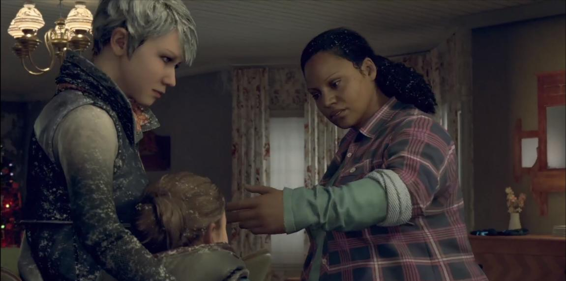 對於卡拉來說,下雪對她和艾莉絲的影響尤其巨大。雖然得到了名為盧瑟的男性仿生人的幫助。但是在前往自由之地加拿大的道路並不輕松愉快。糟糕的天氣甚至讓他們的汽車都拋了錨,三人只能在廢棄的遊樂園度過這個寒冷的冬夜。這是冬天第一次展露出威力,而我們的主角根本無力對抗。第二天接受他們的黑人大媽提供給他們的不僅僅只有溫暖的住所,還有人性的光輝。