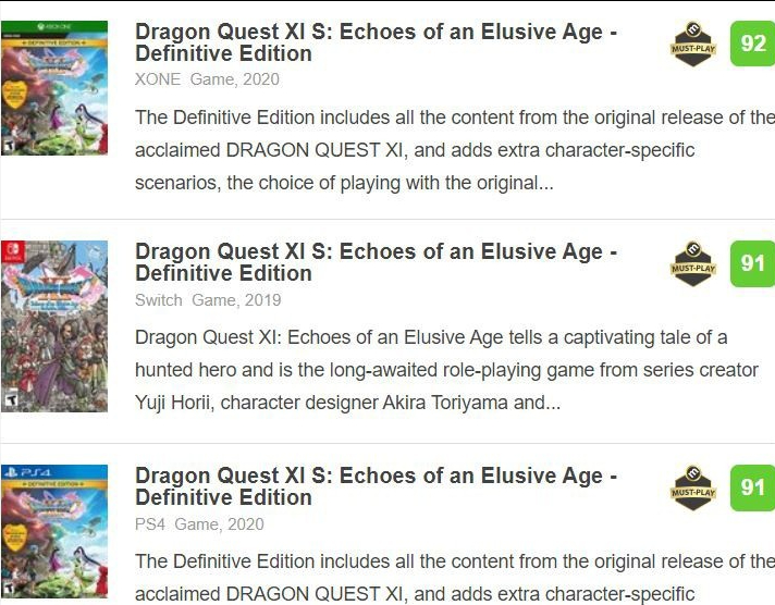 作為JRPG類型的集大成者,DQ11並不僅僅只是年度RPG游戲的有力競爭者,即使將範圍擴大到整個RPG游戲史上,它都如明珠一般耀眼,足以與玩家心目中那些具有崇高地位的經典作品相提並論。而S版則更上層樓,將這部傑作的最佳體驗以幾乎完美無缺的方式呈現在了玩家面前,事實上除了PC版沒有單獨的評分外,《勇者斗惡龍XI S 尋覓逝去的時光 - Definitive Edition》的所有主機平台版本在metacritic上都有超過90分的媒體均分。毫不誇張地說,這就是那種您錯過後絕對要留下遺憾的作品,只要您對JRPG抱有興趣那麼就完全不需要在「買不買」這種小問題上糾結,最多是斟酌一下到底是原價購入立馬開玩還是先不急等打折再購入讓錢包君的負擔稍小一些。