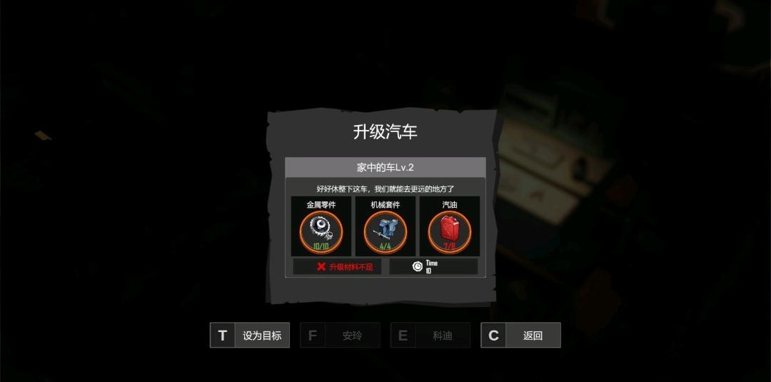 而對於玩家來說,遊戲的長期任務是如何達成的,對於遊戲來說活的更久,教會兒子更多的東西將他培養的更厲害就是遊戲的一個長期目標,它在達成活下去這個小任務的過程中積累而達成。而從另外一個方面來說,遊戲的長期目標被設置為遊戲中對於玩家的限制。就像說,我們要達到更遠的地方去探索我們就需要修復汽車,而修復汽車需要用到的材料很多。那麼修復汽車去更遠的地方就是我們的長期任務之一。