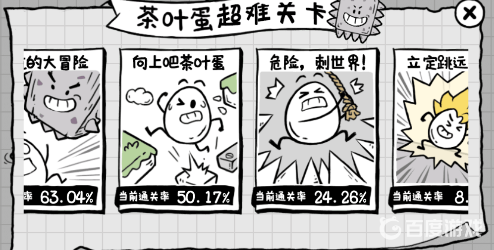 《茶葉蛋大冒險》為我們呈現了一個暗藏「心機」無數和豐富關卡的燒腦遊戲世界。遊戲並沒有追求多麼復雜亮眼的美術風格,而是以黑白灰純色為主要色調,與些許彩色點綴相得益彰,揮筆之間線條簡單,應該是偏向簡筆手繪風。遊戲頁面UI布局也相當簡潔。遊戲的整體風格,不由讓我想起數年前爆火的《史上最坑爹的遊戲》系列,第一眼雖然未必能抓住玩家的眼球,但卻不失清爽輕松的視覺氛圍。