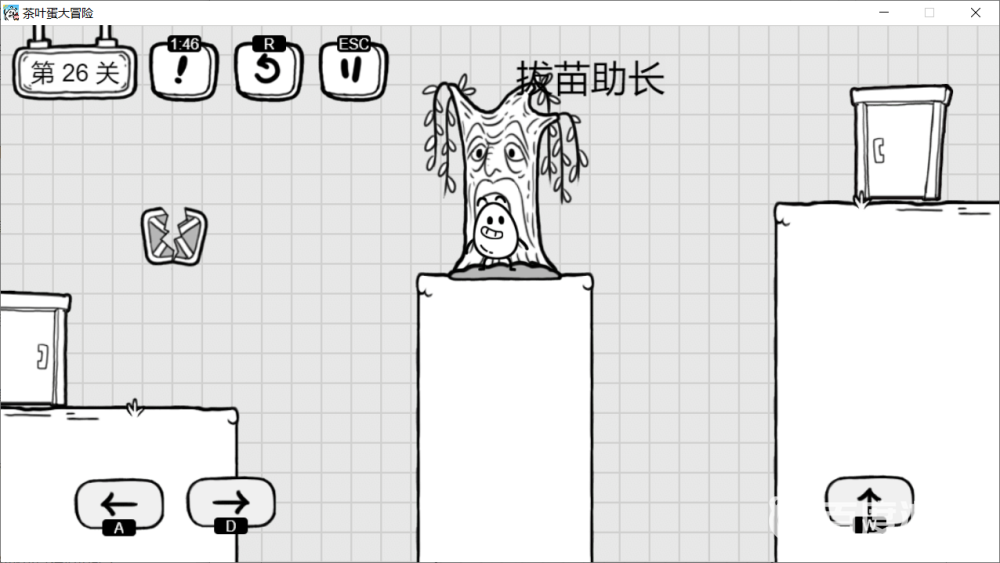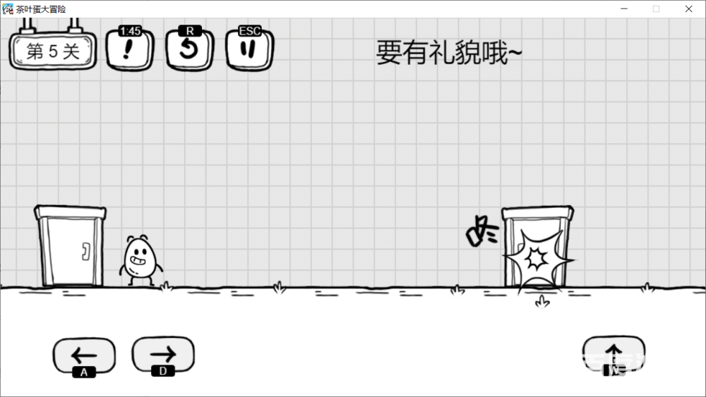 游戲的玩法相當的「簡單」,玩家只需要通過鍵盤上的WASD鍵加以滑鼠輔助,偶爾需要用到空格,控制一個茶葉蛋主角解決路上的障礙,從一個門走到下一個門即可成功過關。