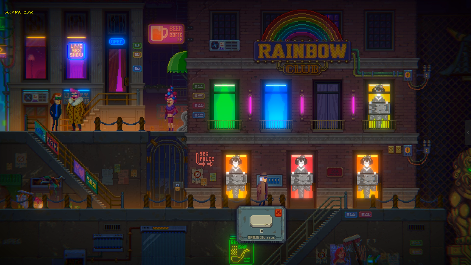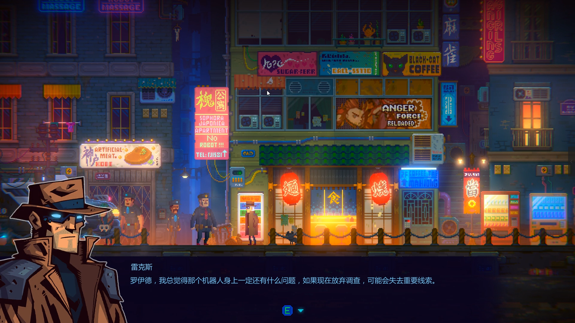 《迷霧偵探》秉持著復古情懷,打造出了如此具有賽博朋克風格的世界與畫面,在充斥著性元素與工業風格強烈對比的畫面中,線條硬朗的建築和機器與其柔和而精緻的燈光一起渲染出了這麼一個燈火輝煌的科幻世界,令人感受著它確實的存在。